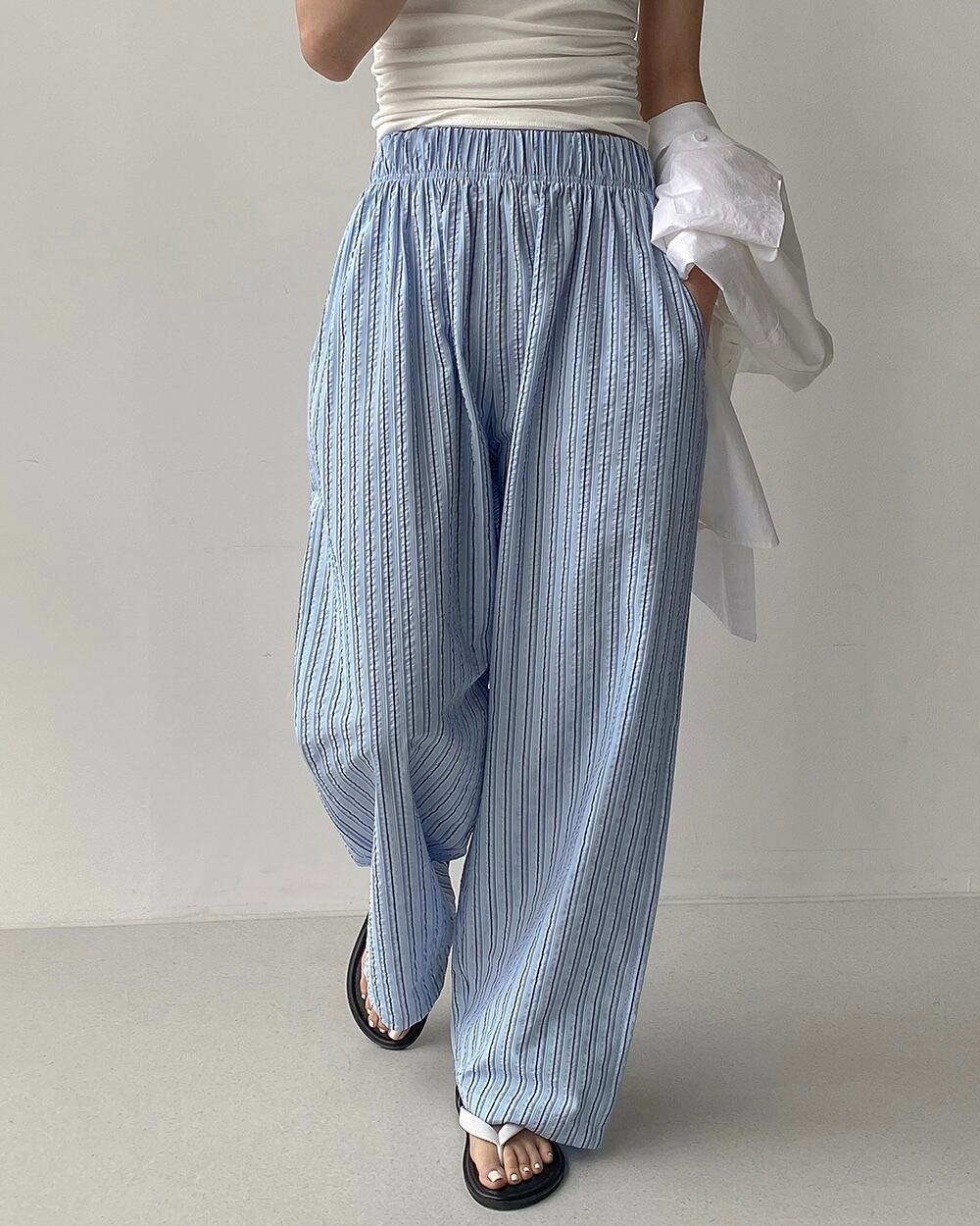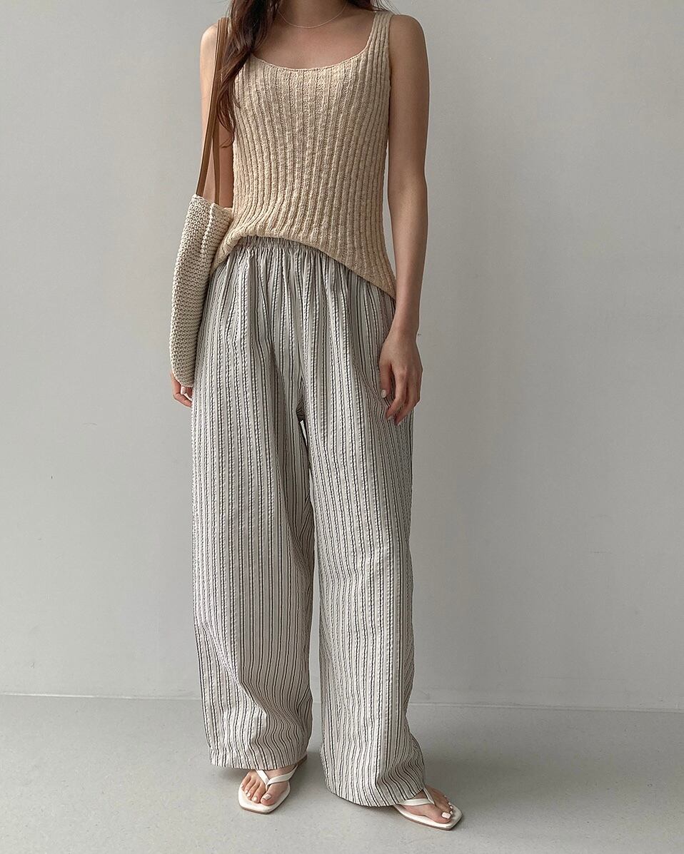 ストライプデザインが爽やかな印象を与え、デイリースタイルからリゾートシーンまで幅広くコーディネートに活躍します!