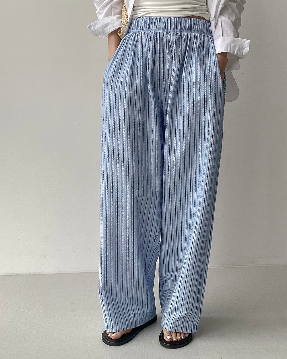 夏のオシャレに欠かせない軽やかなシアサッカー素材を使用したパンツ。