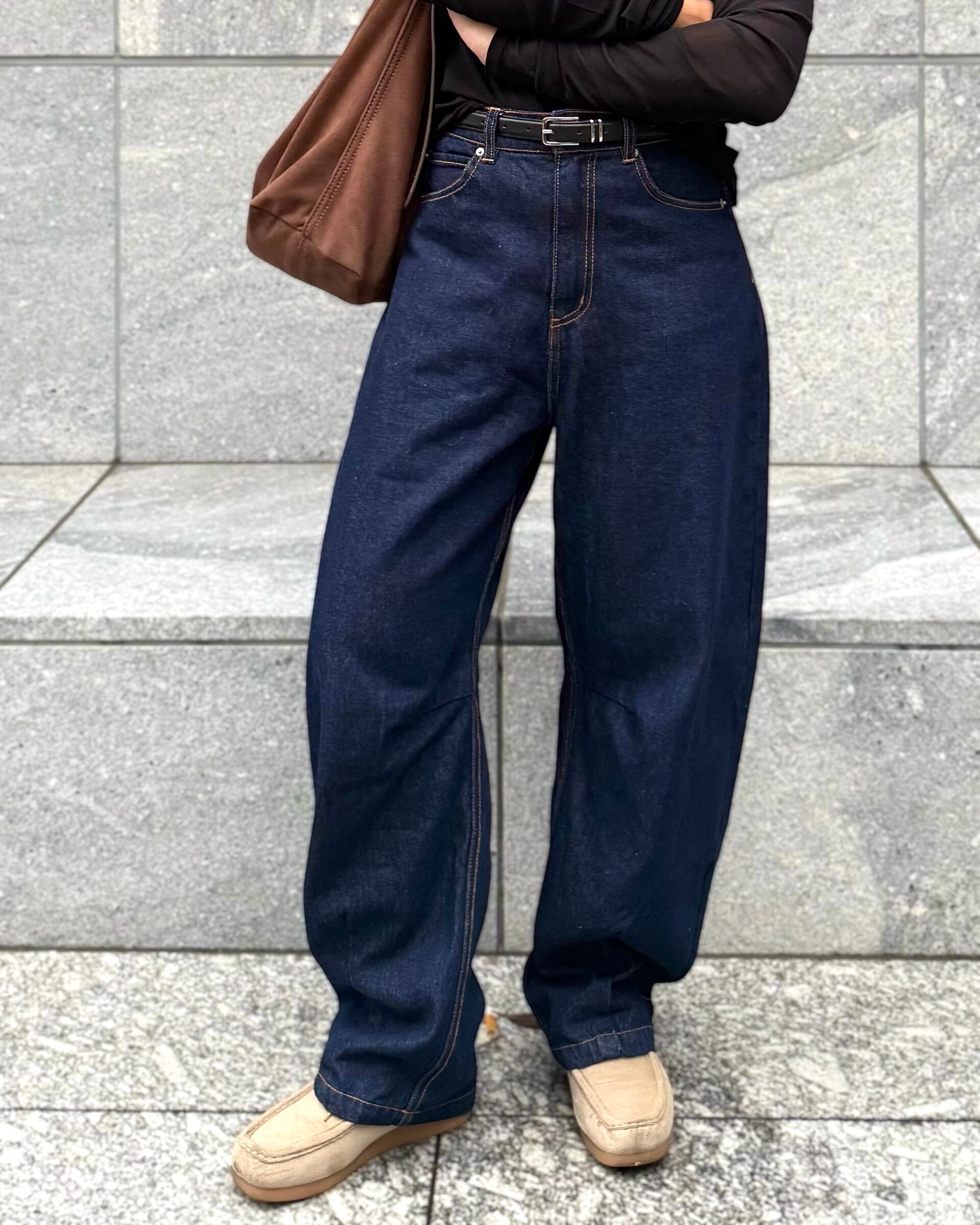 洗練されたワイドシルエットと柔らかな穿き心地を両立した、12ozデニムのカーブパンツ。