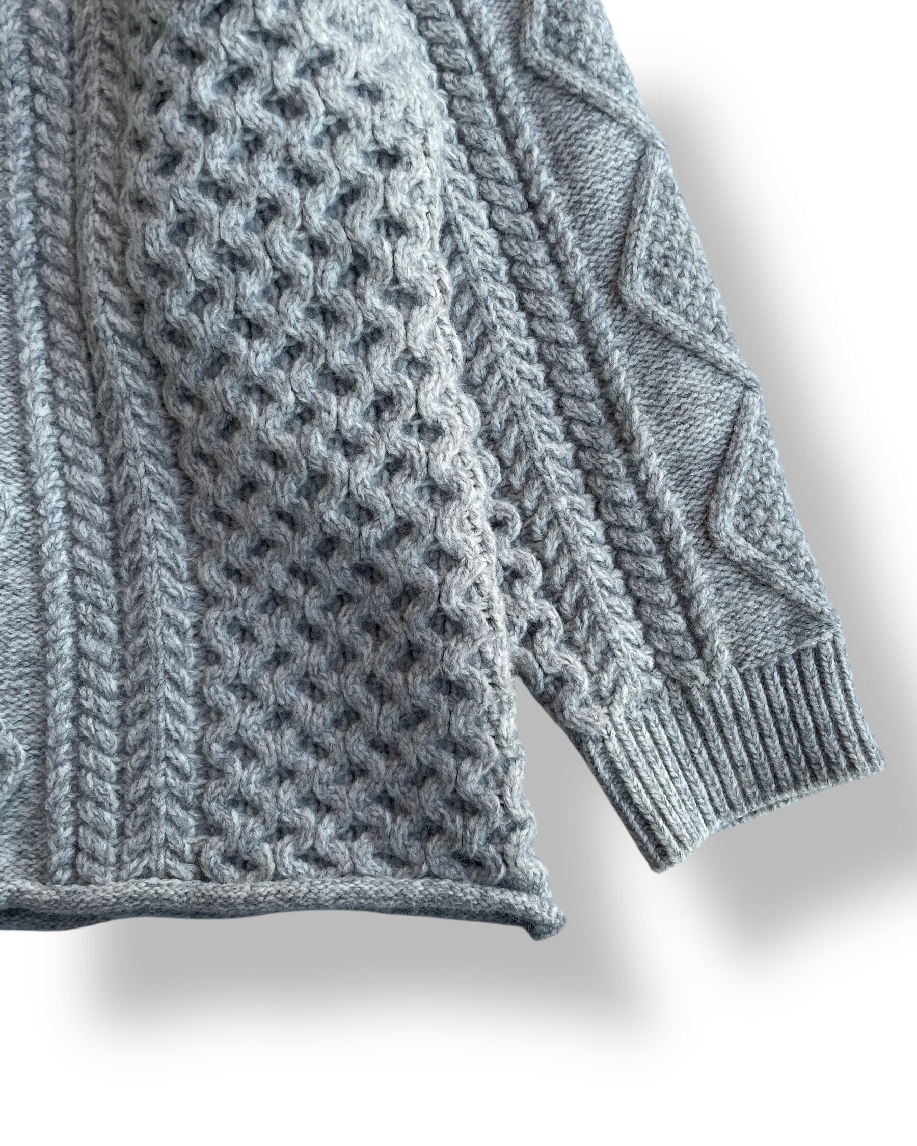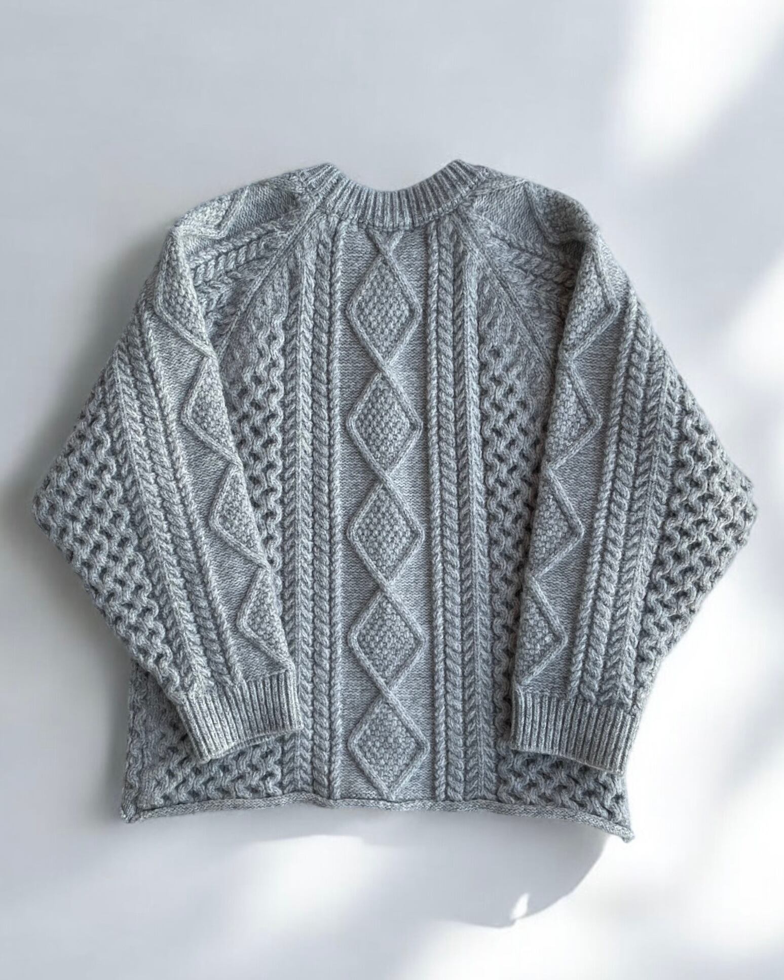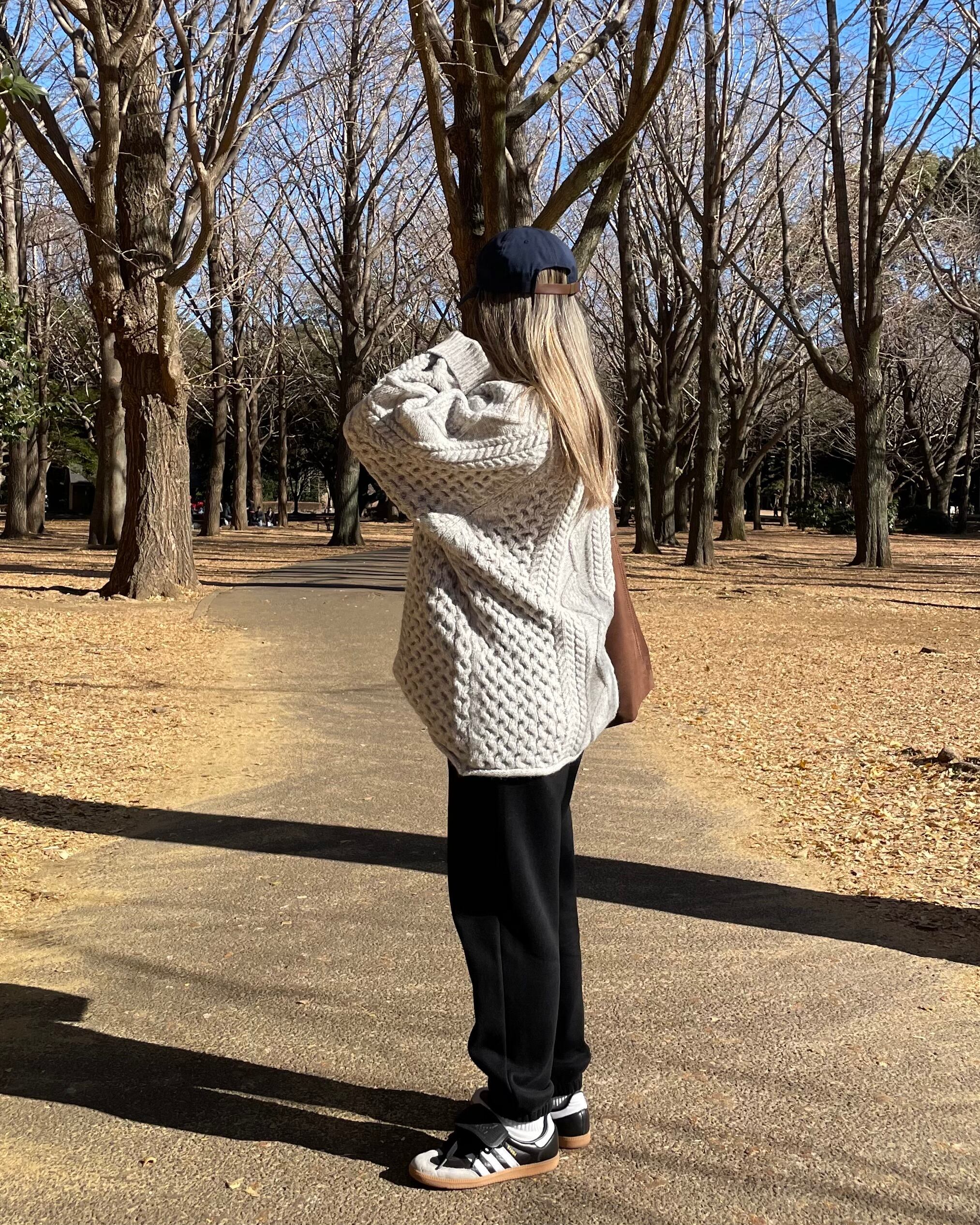 たっぷりなサイズ感とローゲージのざっくり編みが特徴的なケーブル編みハンドニット。