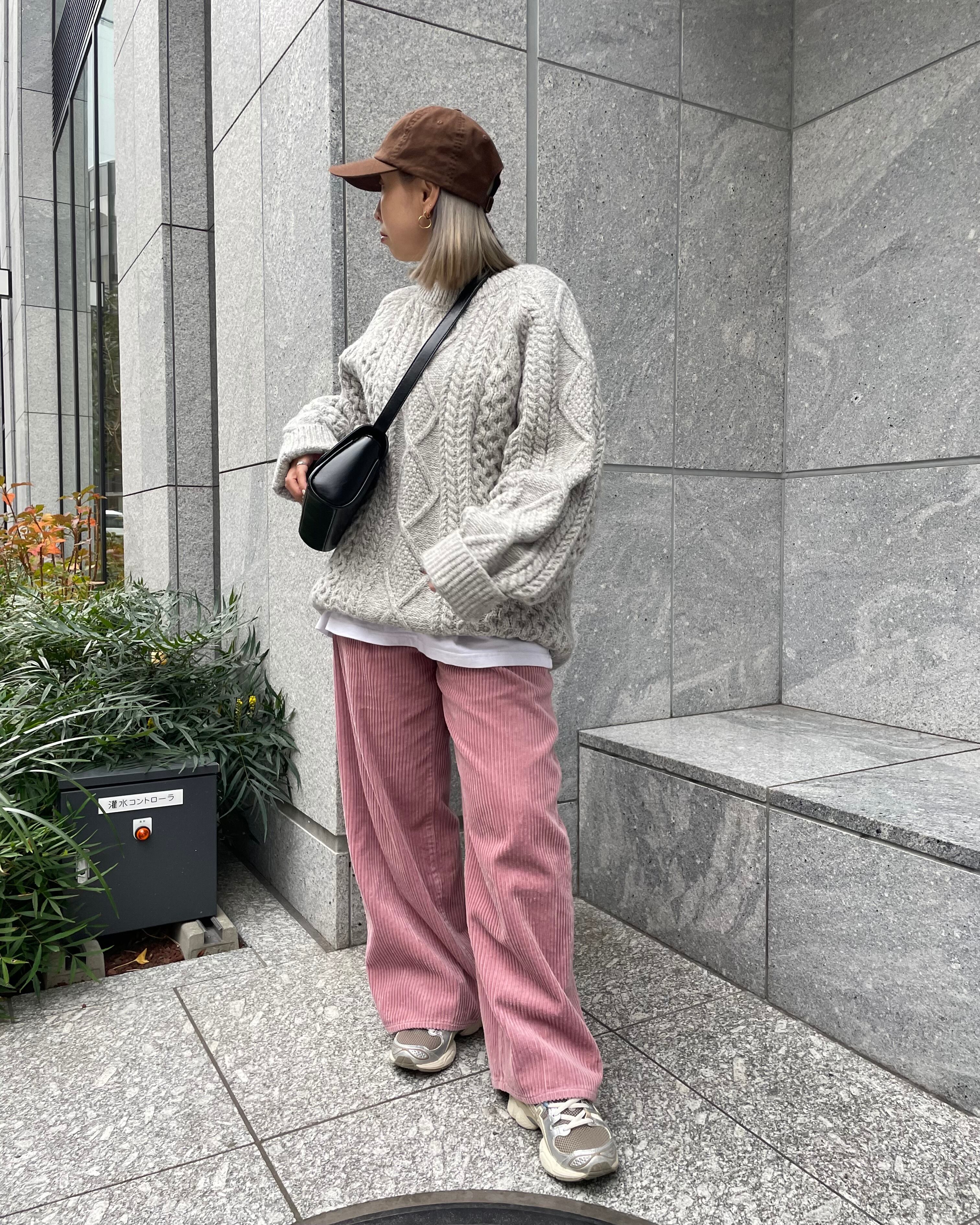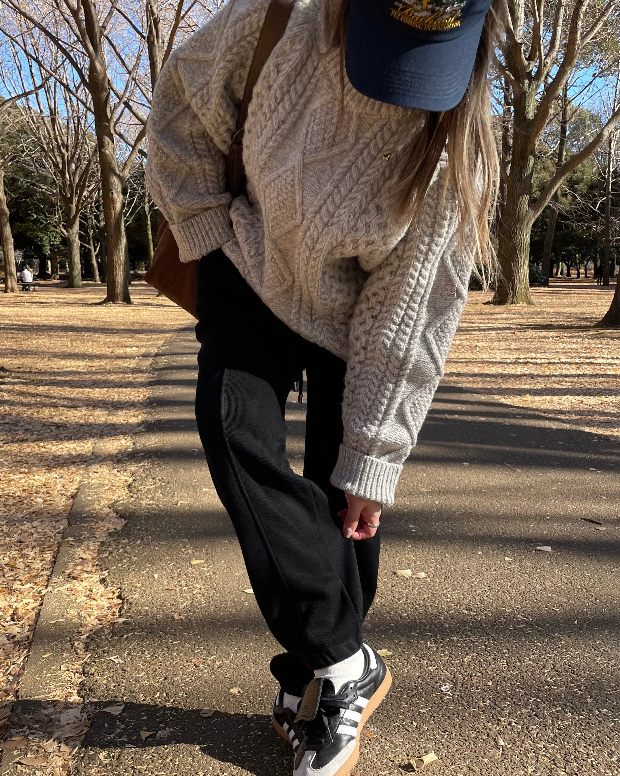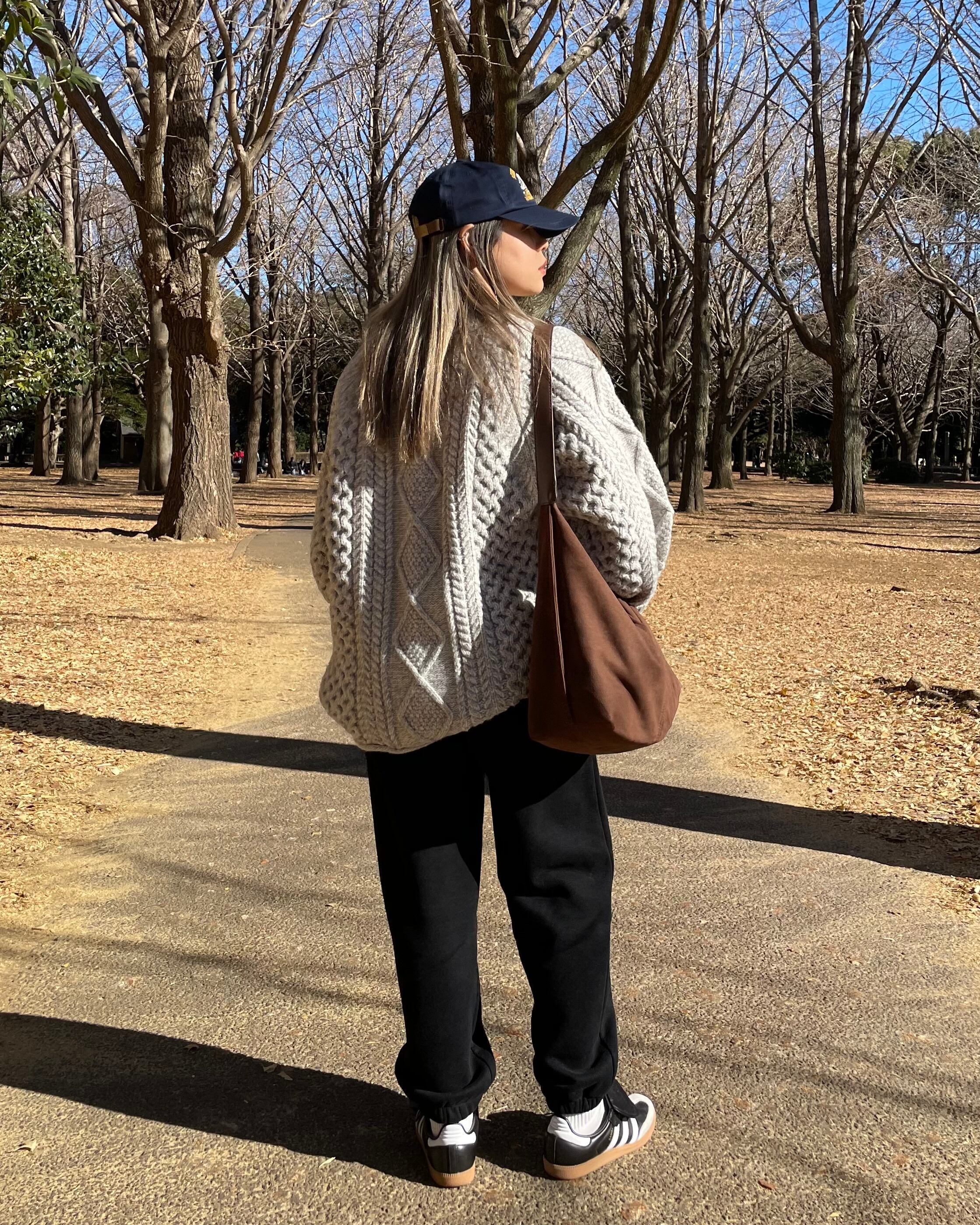 たっぷりなサイズ感とローゲージのざっくり編みが特徴的なケーブル編みハンドニット。