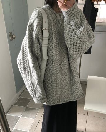 calm oversized chunky cable knit <grey>