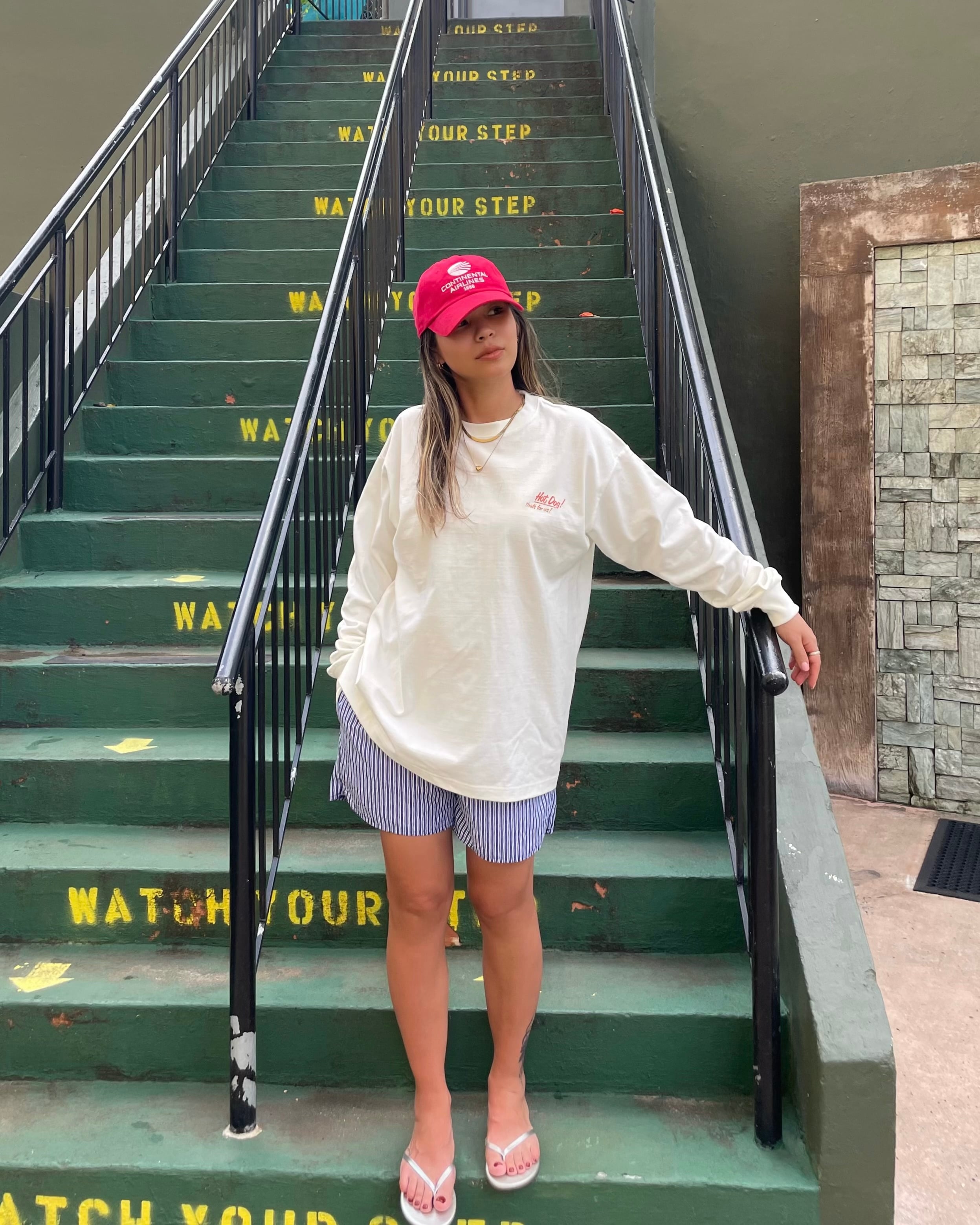 ユニークなホットドッグのプリントが施され、遊び心を加えつつもフロントはシンプルなデザインが魅力となっています。